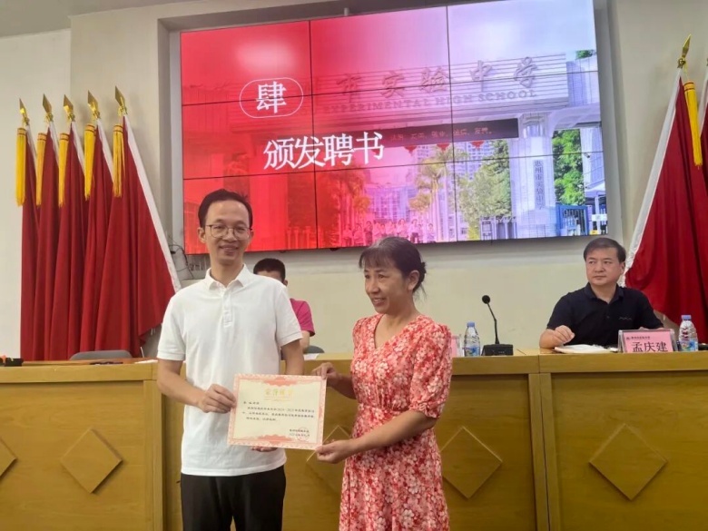 在现场会议环节中,惠州学院和我校的领导共同为我校王爱国、李芳妮子等实习指导老师颁发了聘书,明确了师徒双方职责。同时惠州学院地理与旅游学院吴院长为我校上一学年的优秀实习指导老师代表蔡敏老师颁发了荣誉证书,以表彰优秀,激励我校指导老师们继续发挥榜样作用,做好实习教师的“引路人”。