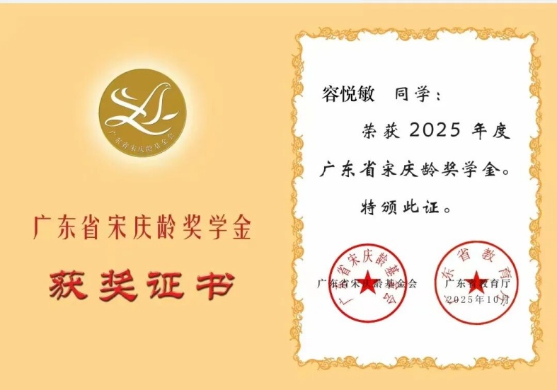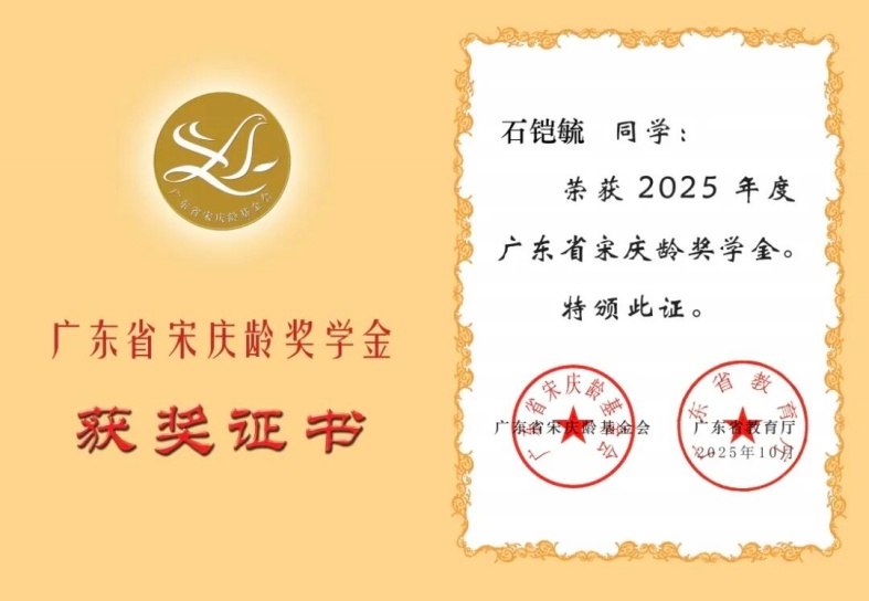 勇攀高峰!容悦敏、石铠毓荣获2025广东省宋庆龄奖学金,激励学子逐梦前行!