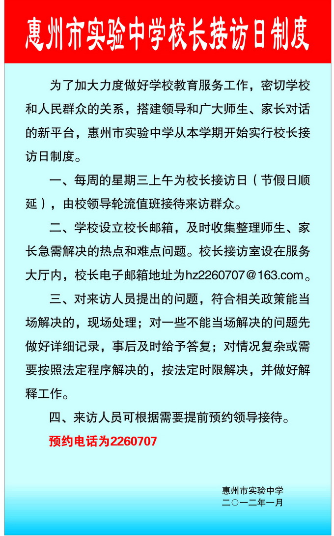 电话:0752-2260707  |  传真:0752-2260707  |  地址:惠州市三环南路一号  |  邮编:516008