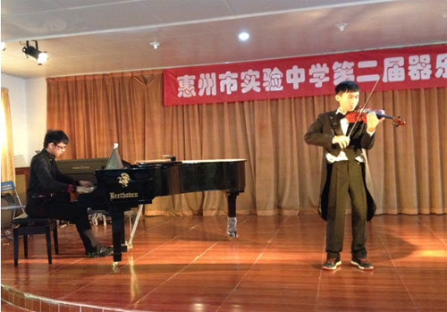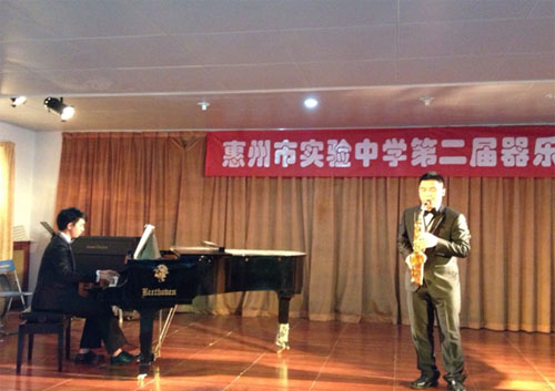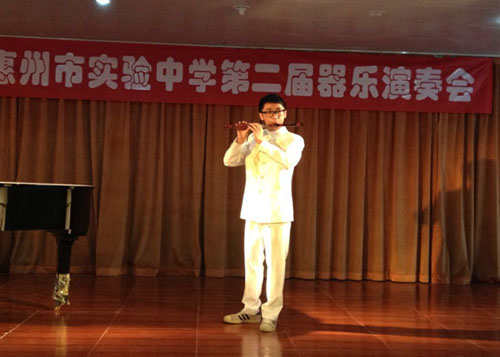 演奏会上,来自我校音乐班的器乐专业的学生以饱满的热情和娴熟的演奏技巧,演绎了不同乐器、不同风格的优秀器乐作品。具有梦幻色彩的《幻想曲》,由单簧管与古筝分别演绎;小提琴独奏《丰收渔歌要》则把观众带进了一个歌舞纷呈的喜庆场景;一曲笛子独奏《秦川抒情》则让观众对大写黄土高原萌生了无限眷恋与向往。双排键《北京喜讯传边塞》、古筝三重奏《汉江韵》、长号独奏《嘎达梅林》、萨克斯独奏《瑶族舞曲》、小号独奏《奏鸣曲》、古筝独奏《东海渔歌》等,无不体现了我校音乐班学生的音乐素质及对高考音乐作品的良好把控能力。
