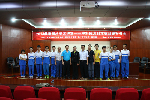 根据《惠市科协联字〔2014〕10号<关于请中科院老科学家来我市开展科普特色教育的通知>》要求,为全面贯彻落实《科普法》,提高广大青少年的科学素质,10月15日下午,我校邀请中国科学院老科学家科普演讲团的科学家赵晓光博士来我校举办了主题为《机器人技术改变世界》科普报告会,高一年级部分学生和教师代表聆听了报告会。