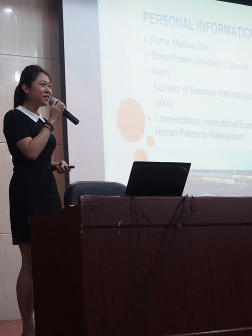 随后,在加拿大学习生活了7年的谭同学用她的亲生经历谈了如何融入当地社会,介绍了她所经历的加拿大的教育,如何毕业及毕业后的就业状况。