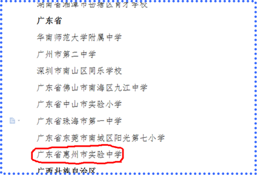 被命名的基本上为全国中小学名校,如中国人民大学附中、北京四中、上海第一中学、华南师范大学附中等,广东省最终仅有8所学校成功当选,我校名列其中。