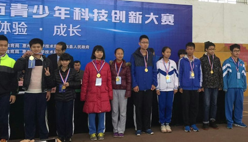 12月4日至6日,我校代表队参加了第十四届惠州市青少年科技创新大赛,我校师生共10个项目获奖,其中1个一等奖,5个二等奖,4个三等奖,孙剑飞老师荣获惠州市优秀科技辅导员荣誉称号。
