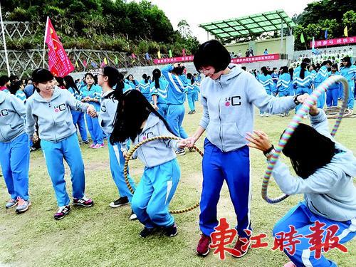 “加油!不要乱!”12月14日下午,市实验中学操场人声鼎沸,高三各班50个同学拉手站成一排,在不松开手的情况下,将8个呼啦圈一直往下传。为缓解高三学子学习压力,引导同学们在快乐中竞争与合作,该校心理中心为高三同学开展了此次名为“一战到底”的团队心理拓展训练活动。