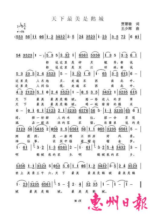 (本首词获“丽景杯”美丽惠州第二届原创歌词比赛一等奖)