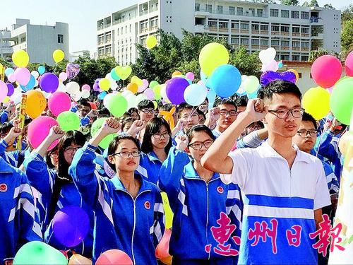 昨日下午,在市实验中学操场上,该校1529名高三年级学生组成四个方队,各个方队轮流发表百日誓词。“浴火重生,浴血奋战”、“誓做黑马,赢在终点”、“百炼成钢,一战功成”……学生们或挥动旗帜,或手执气球,在豪情万丈的宣誓中释放压力,鼓起斗志。他们在气球上写下自己的愿望,让气球承载着高考梦想高飞。随着气球飞上天空,整个操场沸腾起来。