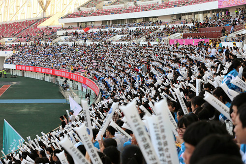 11月12日下午,我校由张启龙副校长亲自带队、学生发展指导中心组织、安全办、新闻中心和团委等相关部门协助,由陈以祥主任带领高一班主任团队具体执行,引领高一年级全体学生奔赴惠州市奥林匹克体育中心观看了2016年中国足球协会女子超级杯赛大连权健与天津汇森的巅峰对决。