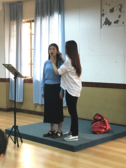 两天的讲座中,王书毅博士对7位学生进行了一对一的教学辅导。她敏锐的听觉和判断力,对于学生的歌唱状态、发音技巧、演唱表演、作品情感等因材施教,通过生动的语言和肢体动作,全面、直观地让学生理解、掌握各种技巧,也同时高度肯定了我校声乐老师的教学方法。