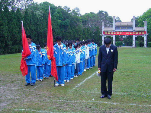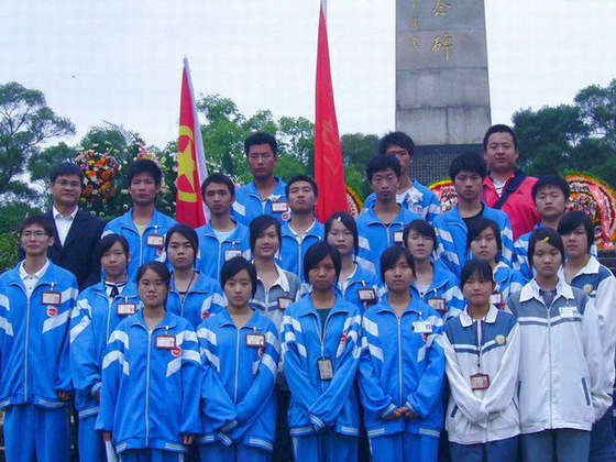 同学们向先烈敬献了花圈,向纪念碑三鞠躬并默哀一分钟。潘小妹代表全体师生宣读了悼词。仪式结束后,师生代表绕纪念碑一周敬献小白花、瞻仰纪念碑。