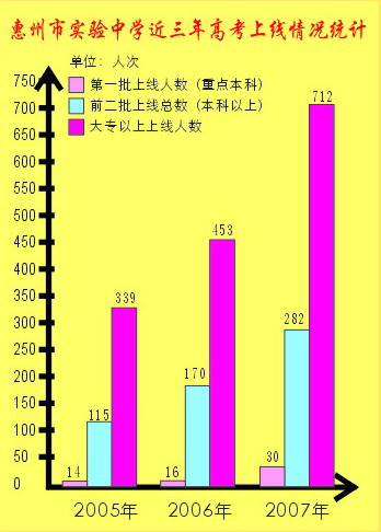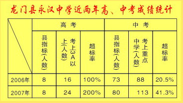 两年来,问鼎官方app下载站和永汉中学的城乡联动工作提升了两校的教育、教学、教研和管理水平,促进了两校的全面快速发展,取得了显著的效果。龙门县永汉中学继2006年高考和中考取得好成绩后,2007年高考和中考又喜获双丰收,高考超标为200%,居全县第一;中考超标人数和超标率居龙门县第一。问鼎官方app下载站继2006年被评为广东省一级学校后,2007年高考和中考又喜获双丰收,高考超标为200%,居全县第一,中考超标人数和超标率居龙门县第一。我校继2006年被评为广东省一级学校后,2007年又通过了广东省国家级示范性普通高中初期督导验收;2007年高考又取得了历史性的新突破,本科上线282人,比上年增长75.2%,其中重点上线人数比上年增长87.5%,本科及重点上线人数、本科上线率均名列市直重点中学第二,再次荣获惠州市人民政府颁发的“高考成绩进步奖”。