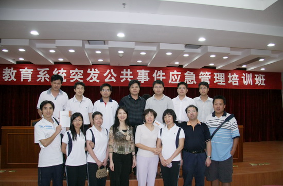 近日,我校组织二十多名教师参加了由市教育局组织的“教育系统突发公共事件应急管理‘培训者’”培训班。市教育局安全办主任丘曼萍主持了开班仪式,我校德育处安全办郭秋凌主任为学员主讲了《事故灾难系统公共危机的应急管理》一课。通过两天的培训,老师们了解了教育系统突发公共事件的理论,把握教育系统突发公共事件应急管理的原则和规则,还具体了解了每一种类型的教育突发公共事件的内容和具体的应对方法和措施。