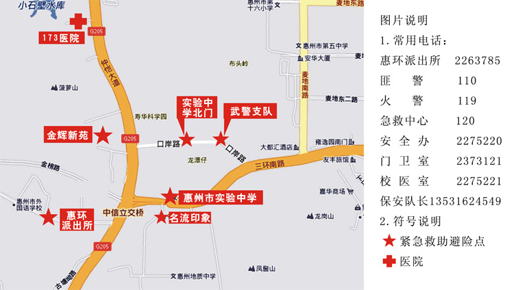 说明:当在学校周边遇险时,迅速到就近的紧急求助避险点求助、避险。